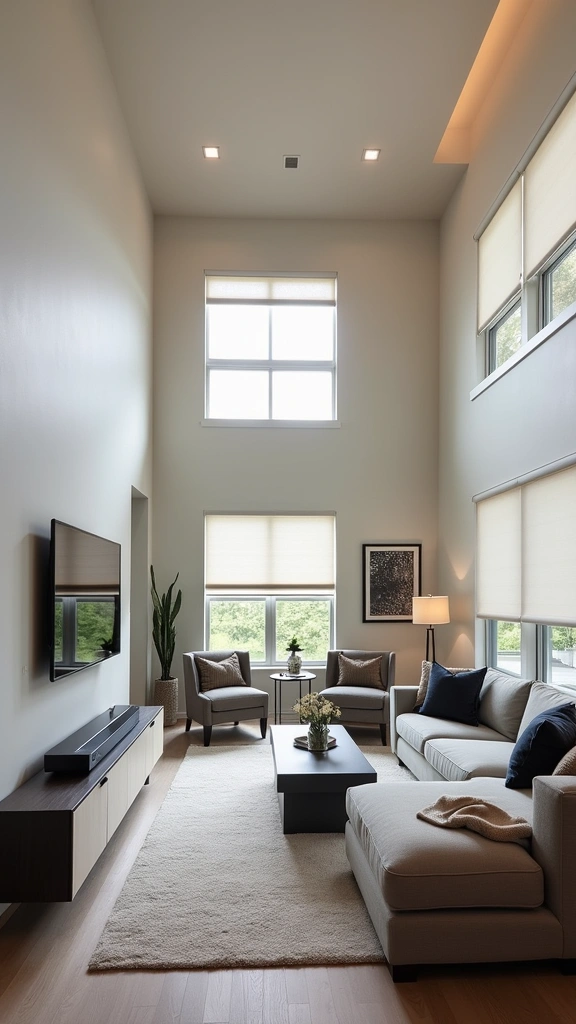 Incorporating technology into your double height living room can enhance both functionality and comfort.