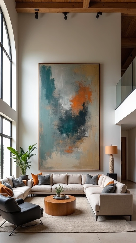 Transform your double height living room into a personal gallery by showcasing art pieces that resonate with you.