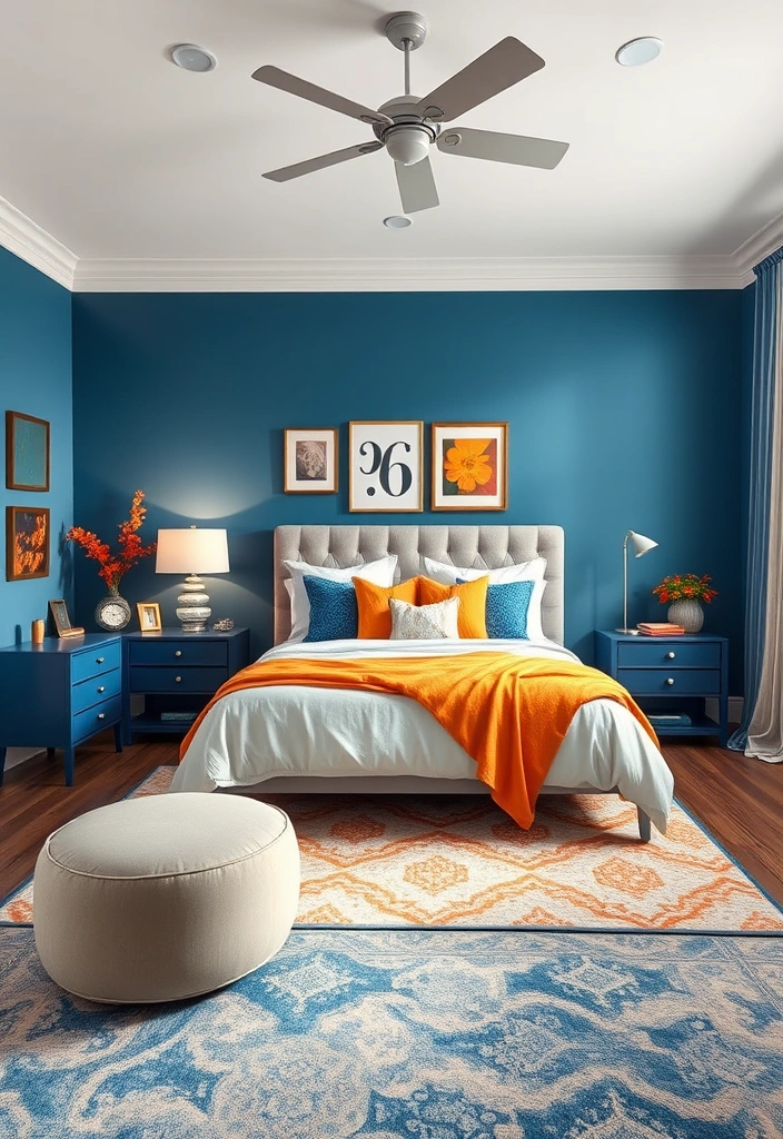 Transforming your bedroom with a bleu and orange color scheme allows for endless creativity and personalization.