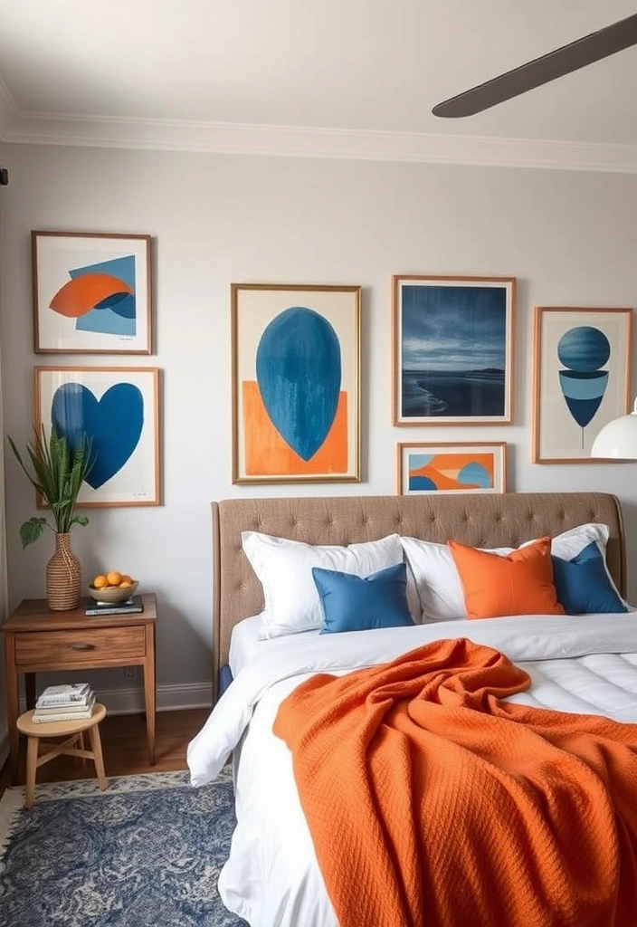 Bring your personality into your bleu and orange bedroom with personalized artwork that reflects your style.
