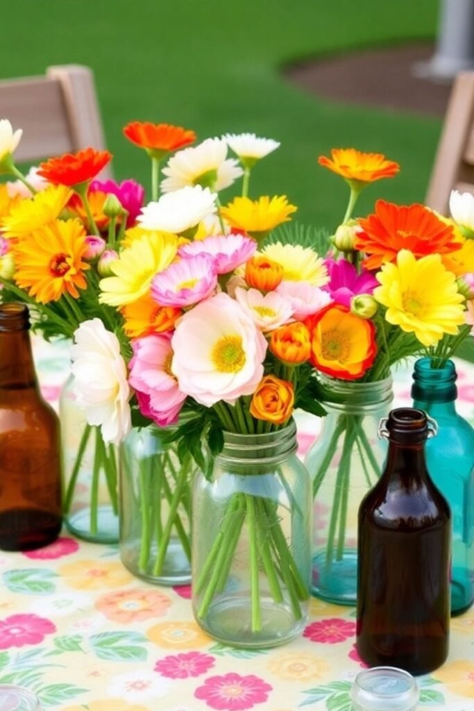 Incorporating elements like mason jars or vintage bottles adds charm and character to your arrangement.